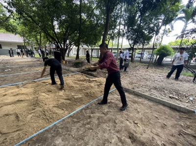 คณะผู้บริหาร คณะครู นักเรียน แผนกโลจีสติก ช่างเชื่อมโลหะ สถาปัตยกรรม ก่อสร้าง พัฒนาพื้นที่ภายในวิทยาลัยโดยการจัดทำลานที่นั่งอเนกประสงค์